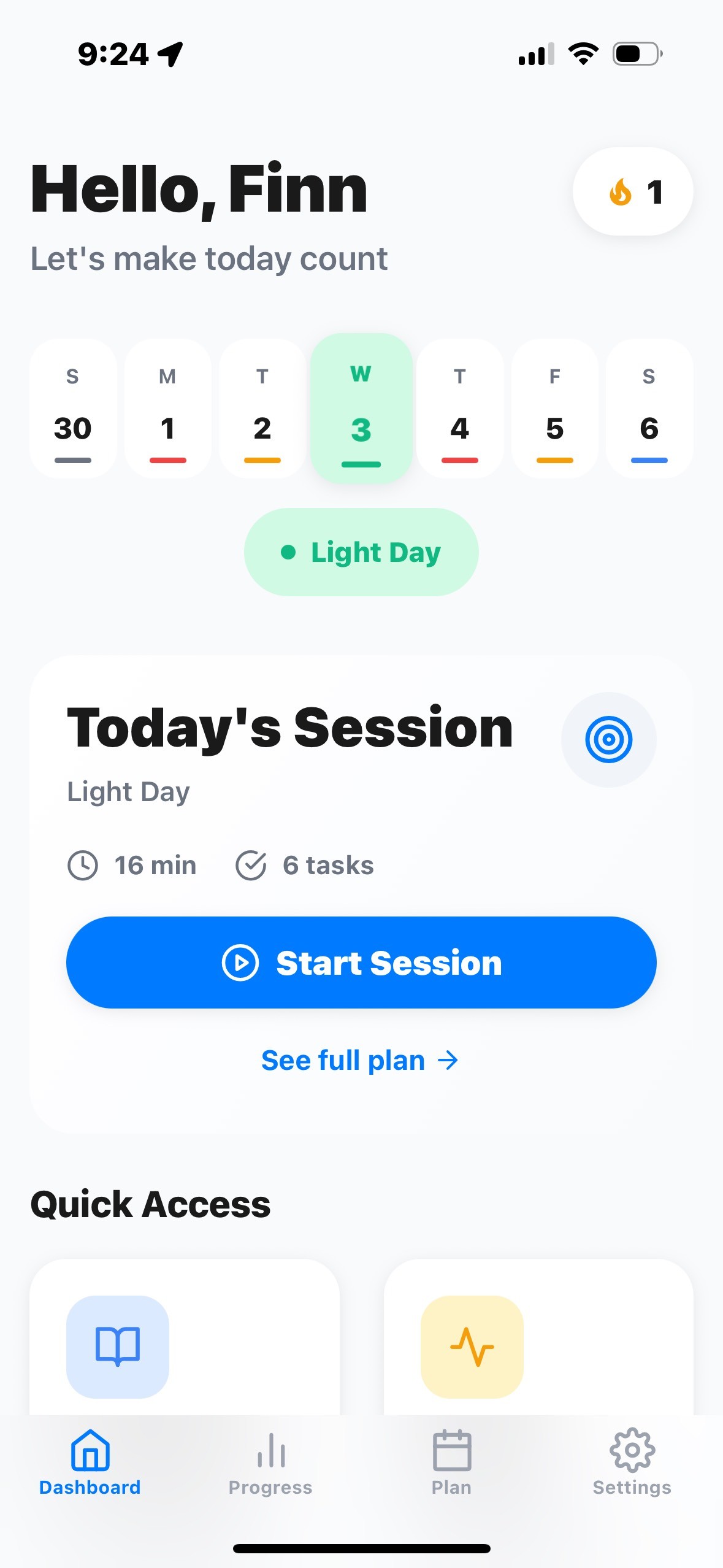 Programs, daily training, mobility, and progress tracking — all in one place.